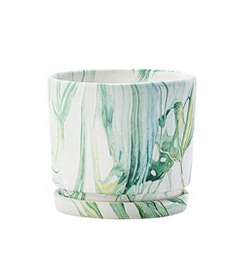 Green Marble Planter comes with a detached matching saucer. This item does have a drain hole.